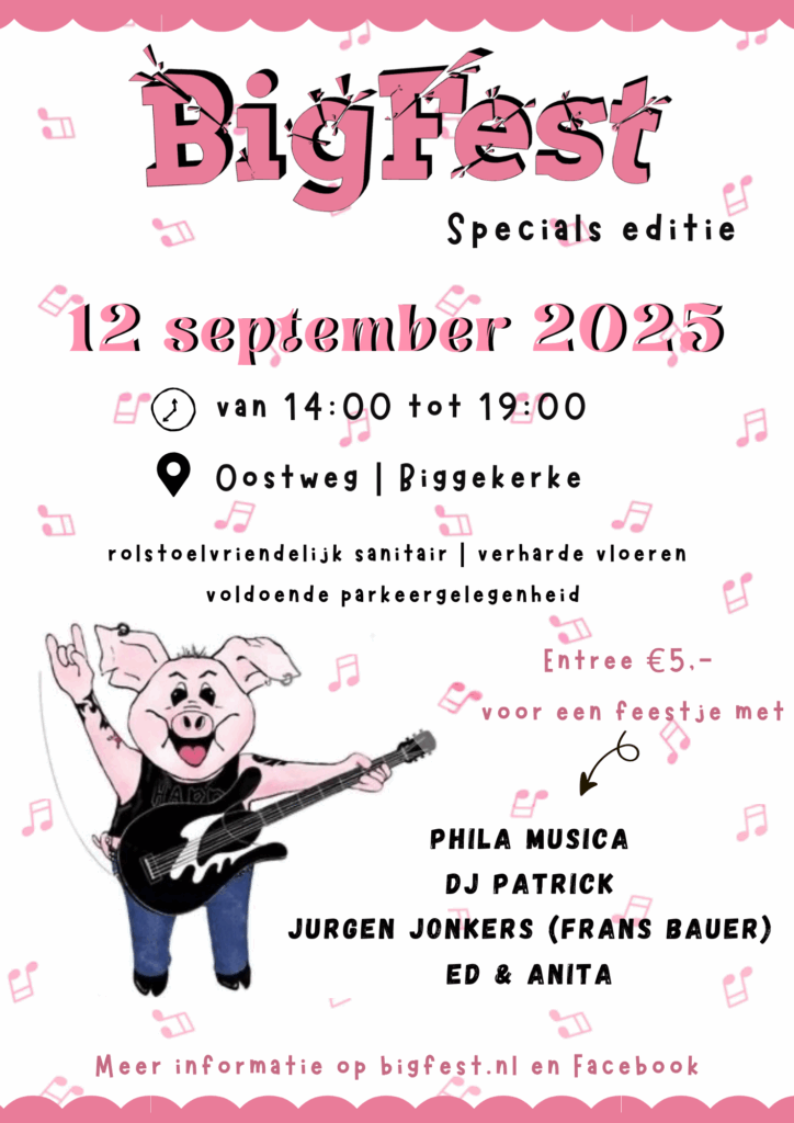 Dit jaar gaan we er weer een feestje van maken. Bigfest for Specials !! Een festival toegankelijk voor mensen met een verstandelijke of lichamelijke handicap!